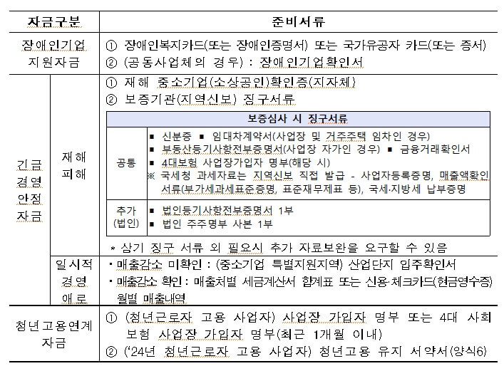 또한 신청하는 지원자금에 따라 추가 서류를 제출해야 하며, 아래 내용 확인하시기 바랍니다.
