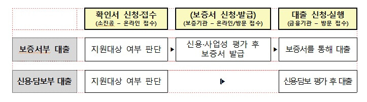 지원절차는 아래와 같으며, 소상공인 정책자금 온라인 사이트(ols.semas.or.kr)에서 신청 접수합니다.